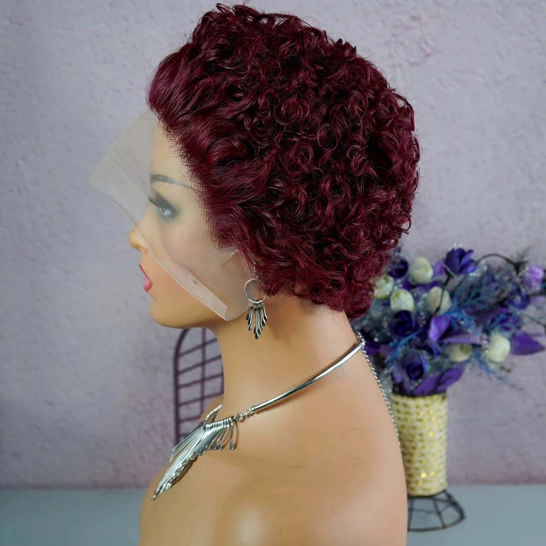 Burgundy Curly Human Hair Pixie Wigs for Black Women |