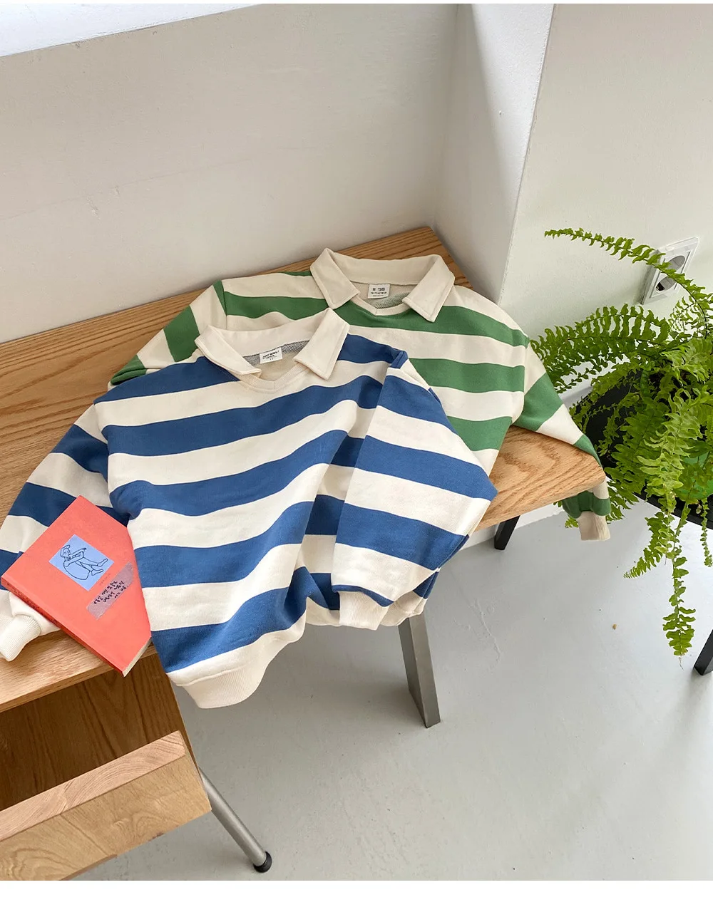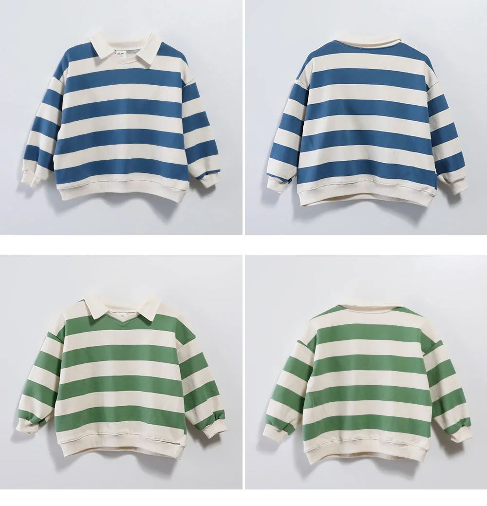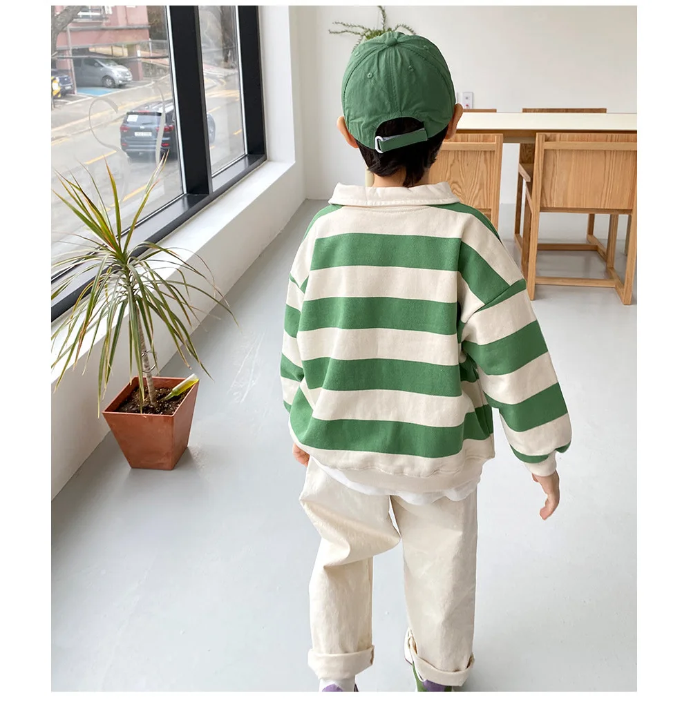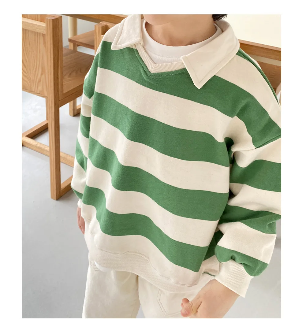2024 Kids Spring Autumn Clothes Boys Stylish Striped T-shirts Long-sleeved Lapel Hoodie Children Loose Top Cotton Tees for 1-6Y