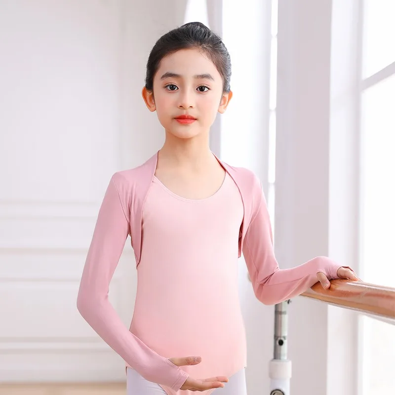 Modal girls dance wear shoulder thin section spring and autumn ballet practice clothes jacket children's outer dancing shawl with thumb finger sleeve