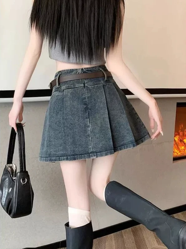 New design sense short skirt denim half skirt women's high waist versatile slim fit A-line skirt – with belt summer new