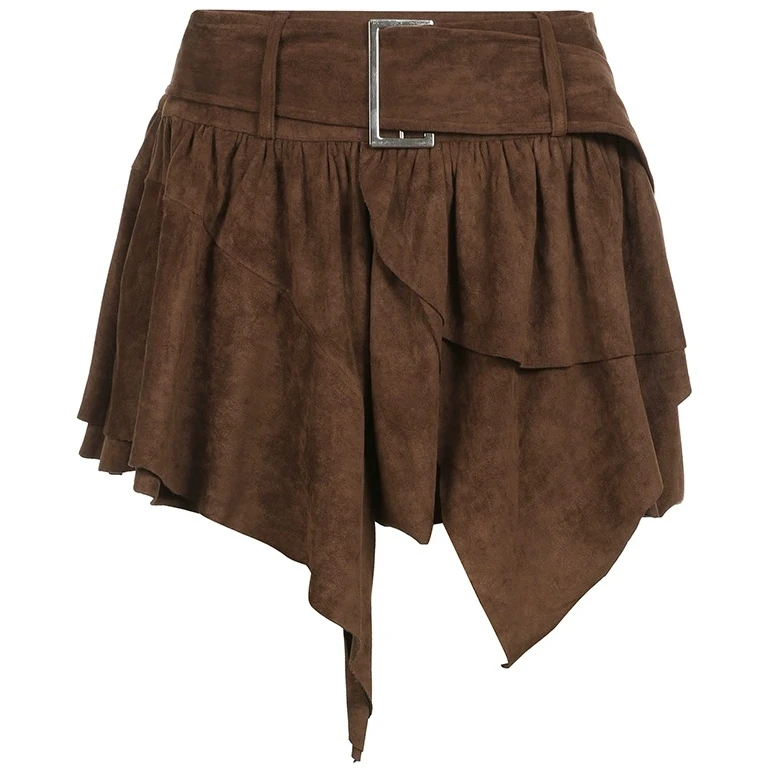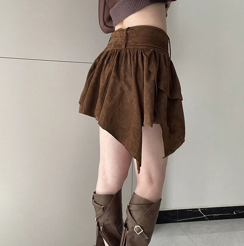Retro multi-layer spicy girl skirt with irregular high waist and leg length A-line skirt for women, summer sexy asymmetric skirt
