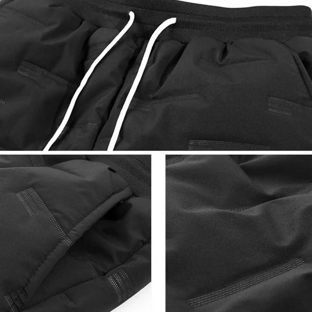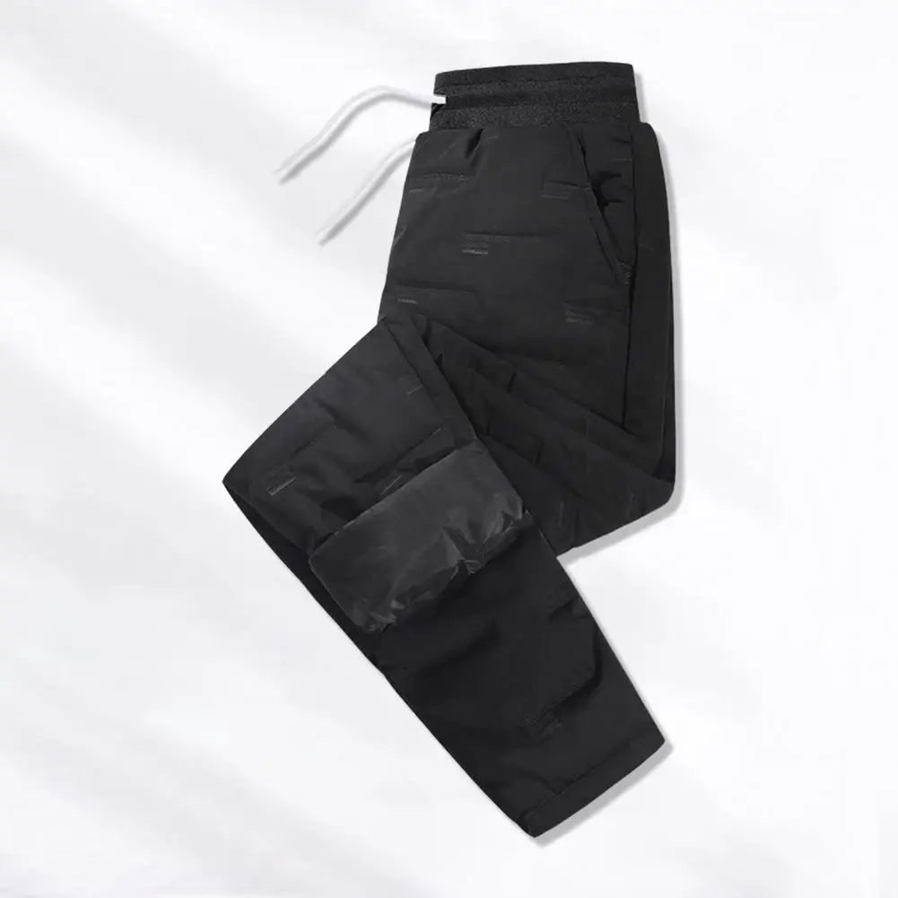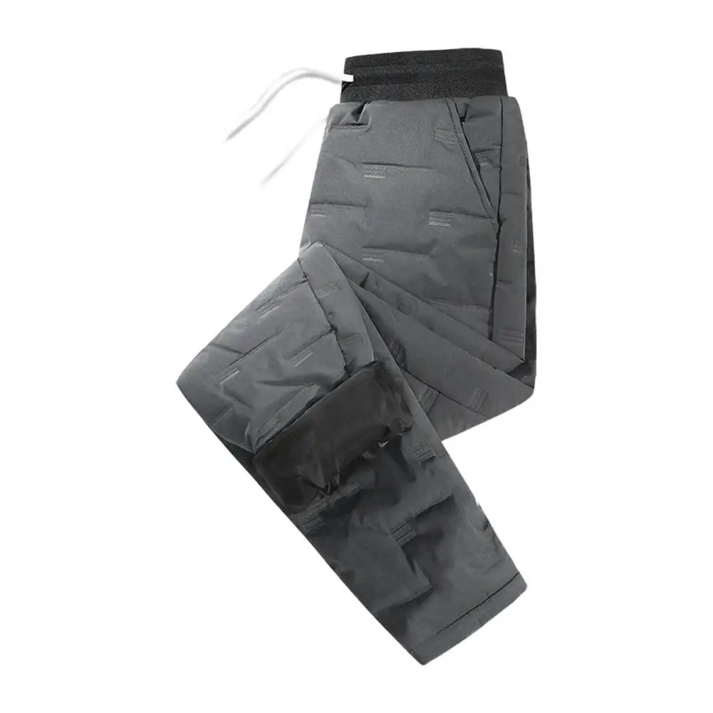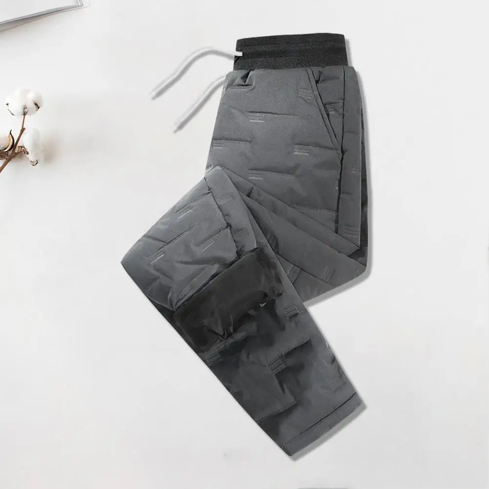 Winter Men Pants Thick Padded Drawstring Elastic Waist Ankle-banded Smooth Surface Solid Color Warm Sport Travel Work Trousers